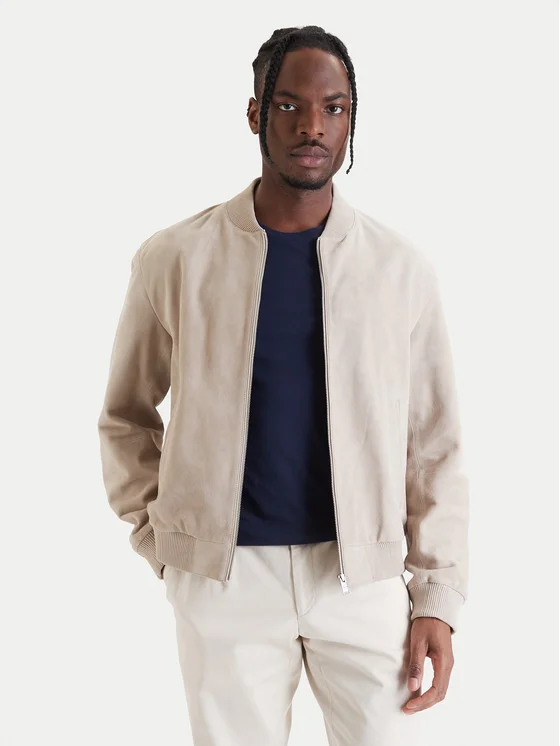 BOSS Ādas jaka H-Muller 50543213 Bēšs Regular Fit
