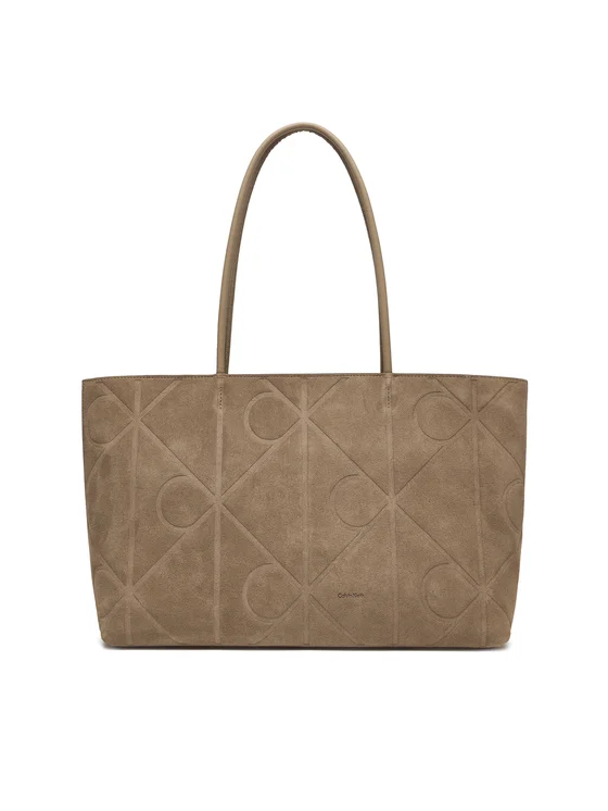 Calvin Klein Soma Emblem Aop Embossed Suede Tote LV04F3334G Bēšs