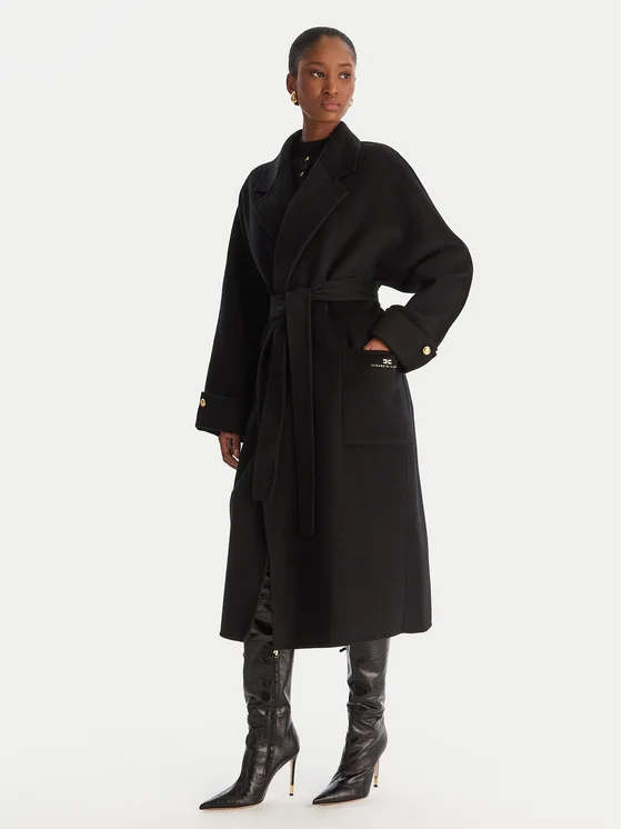 Elisabetta Franchi Vilnas mētelis CP-68D-56E2-V820 Melns Regular Fit