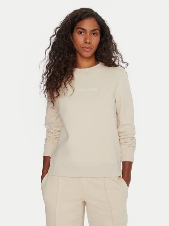 Guess Jeans Džemperis ar kapuci W4YQ10 KC811 Bēšs Regular Fit