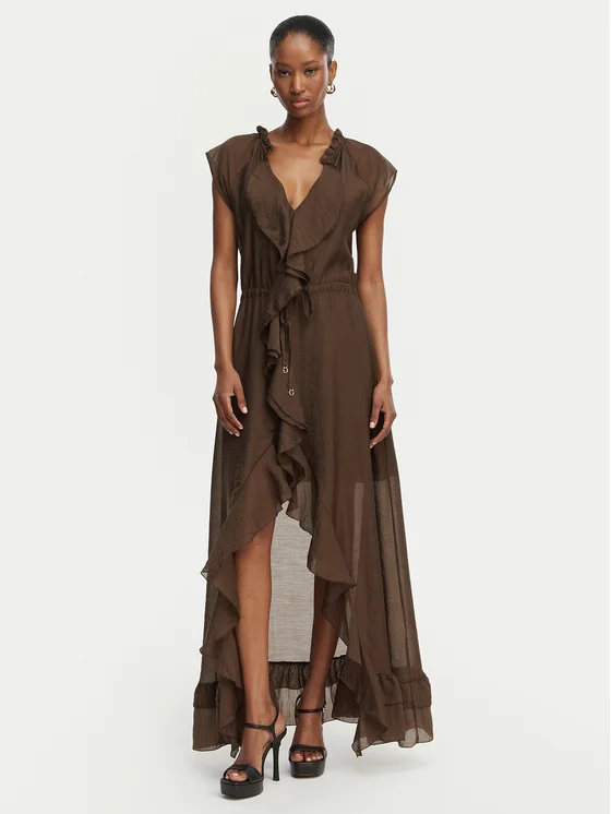 Guess Kokteiļkleita W6GK87 W2111 Tumši brūna Regular Fit