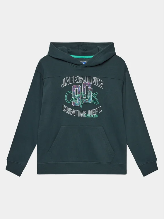 Jack & Jones Junior Džemperis ar kapuci 12243086 Zaļš Loose Fit
