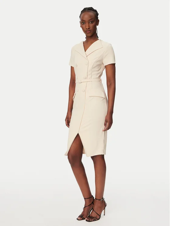 Rinascimento Kokteiļkleita CFC0127893003 Bēšs Slim Fit