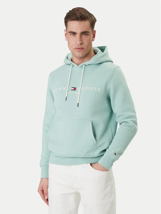 Tommy Hilfiger Džemperis ar kapuci Logo MW0MW11599 Zaļš Regular Fit