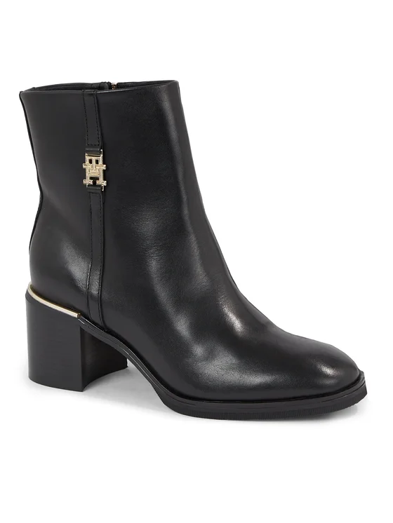 Tommy Hilfiger Īsie zābaki Feminine Th Hardware Mid Bootie FW0FW07539 Melns