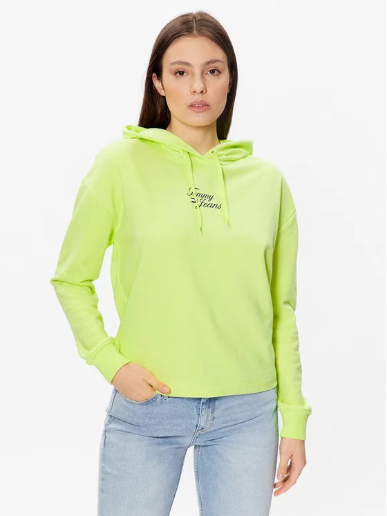 Tommy Jeans Džemperis ar kapuci Essential Logo DW0DW15410 Zaļš Boxy Fit