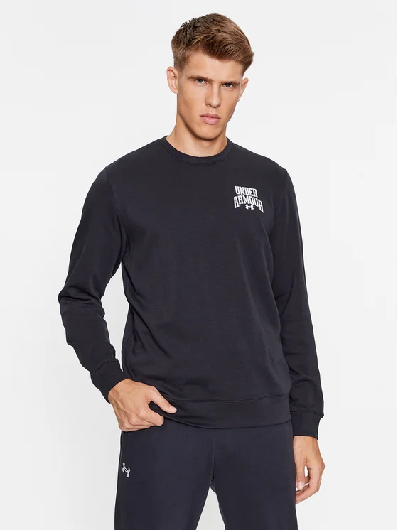 Under Armour Džemperis ar kapuci Ua Rival Terry Graphic Crew 1379764 Melns Loose Fit